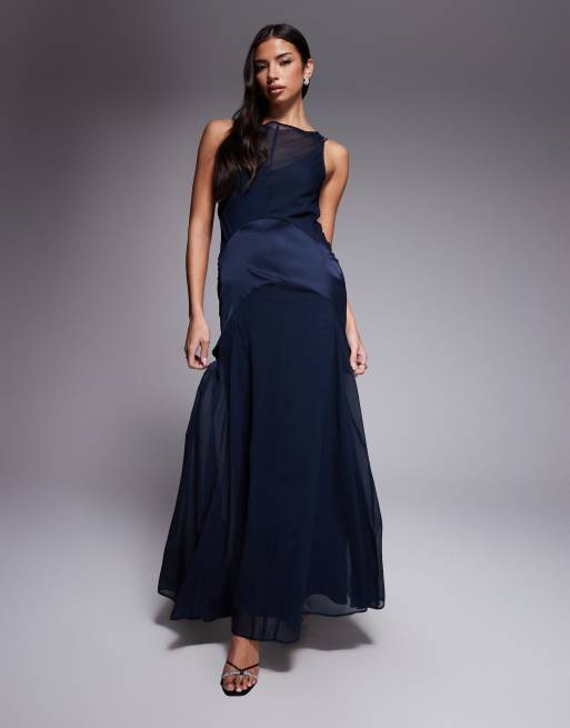 ASOS DESIGN – Marinblå maxiklänning i satinmix med sänkt midja