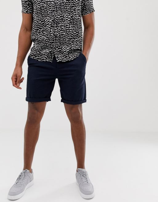 ASOS DESIGN – Marinblå, medellånga chinosshorts med smal passform