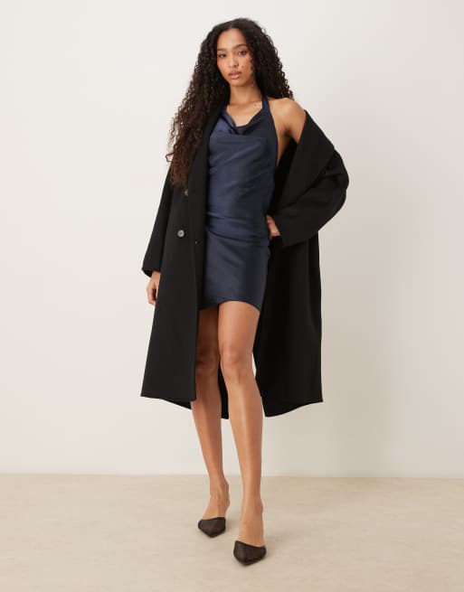 ASOS DESIGN – Marinblå miniklänning i satin med halterneck