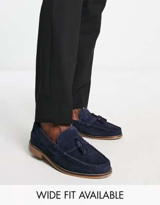 ASOS DESIGN – Marinblå mockaloafers med tofs och sula i naturmaterial