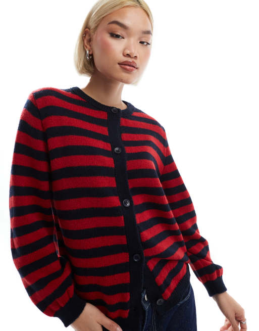 ASOS DESIGN – Marinblå- och rödrandig, stickad, fluffig kofta