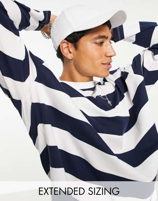 ASOS DESIGN – Marinblå och vit, långärmad oversize t- shirt med ränder