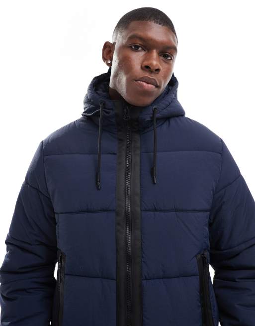 ASOS DESIGN – Marinblå pufferjacka i nylon med kontrasterande detaljer