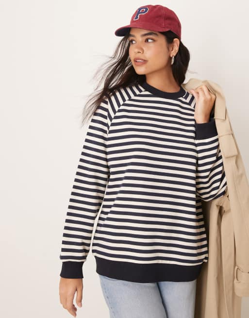 ASOS DESIGN – Marinblå, randig, ribbad sweatshirt i oversize med långa ärmar