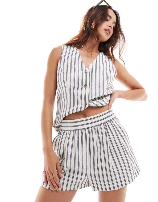 ASOS DESIGN – Marinblå randiga shorts av linnemix med dra på-stil