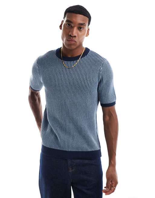 ASOS DESIGN – Marinblå ribbstickad t-shirt.
