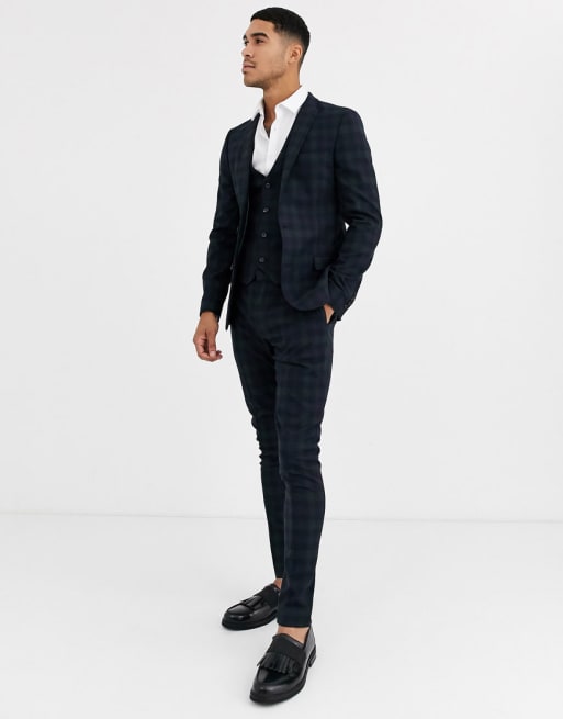 ASOS DESIGN – Marinblå skotskrutig kostym med supersmal passform