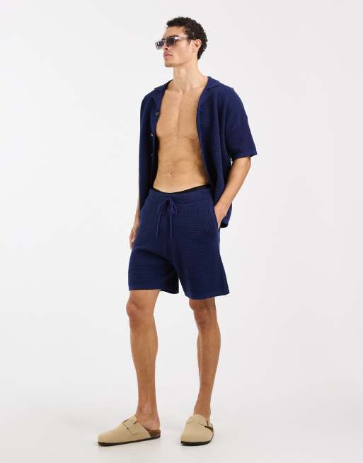 ASOS DESIGN – Marinblå, stickade shorts, del av set