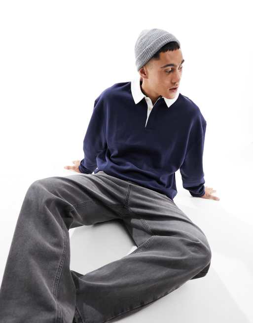 ASOS DESIGN – Marinblå sweatshirt i oversize och rugbymodell med pikékrage