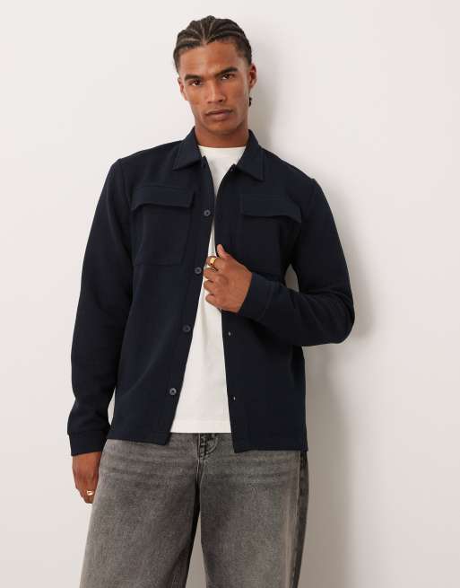 ASOS DESIGN – Marinblå, texturerad skjortjacka med knäppning