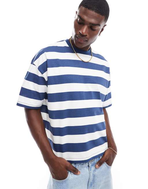 ASOS DESIGN – Marinblårandig t-shirt i oversize med boxig passform