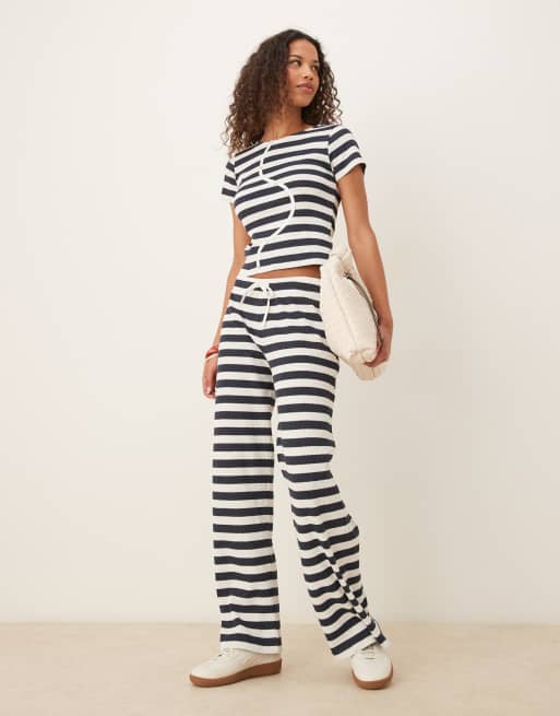 ASOS DESIGN – Marinblått och vitt, randigt set med liten t-shirt med knäppning och byxor
