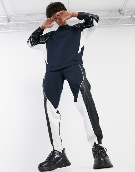 ASOS DESIGN – Marinblått set med bikerdetaljer i nylon