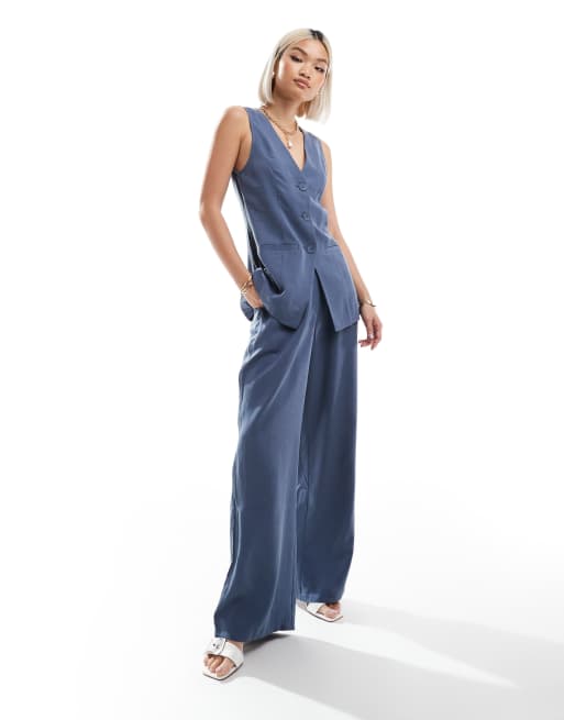 ASOS DESIGN – Marinblått set med kostymväst i lång modell och byxor
