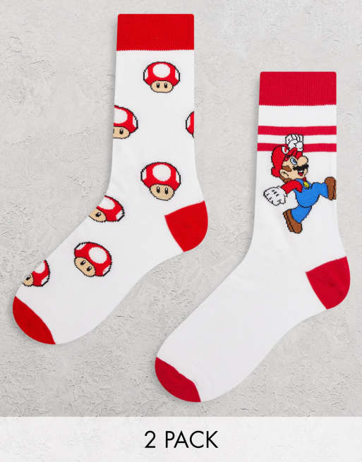 ASOS DESIGN – Mario Kart – Vita ankelstrumpor, 2-pack