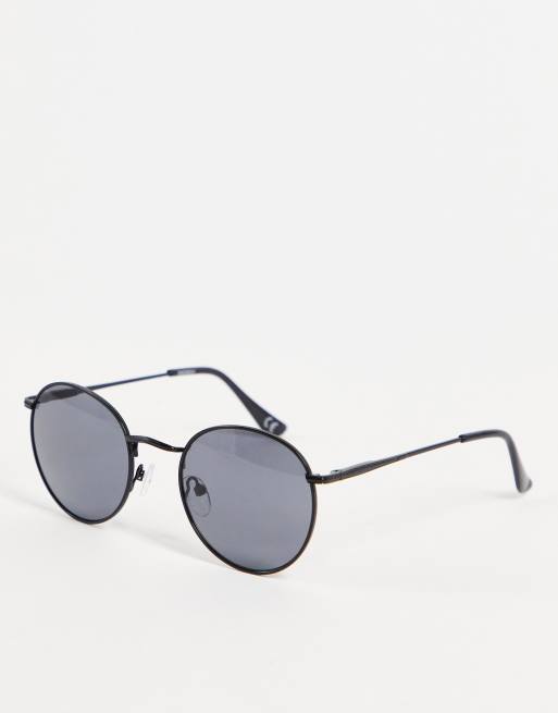 ASOS DESIGN – Mattsvarta runda solglasögon med svarta glas