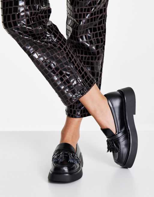 ASOS DESIGN – Maxwell – Svarta, grova loafers med tofsar