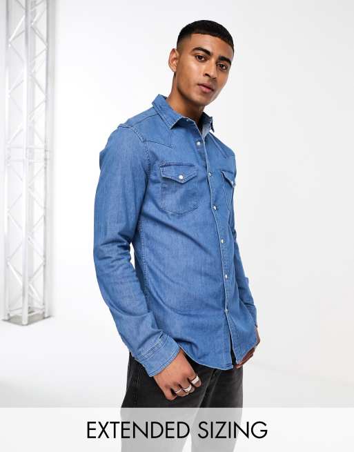 ASOS DESIGN – Mellanblå cowboyskjorta i jeanstyg med extra smal passform