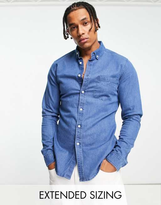 ASOS DESIGN – Mellanblå, smal jeansskjorta