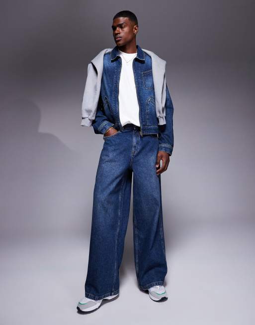 ASOS DESIGN – Mellanblå, tvättade, extra baggy jeans, del av set