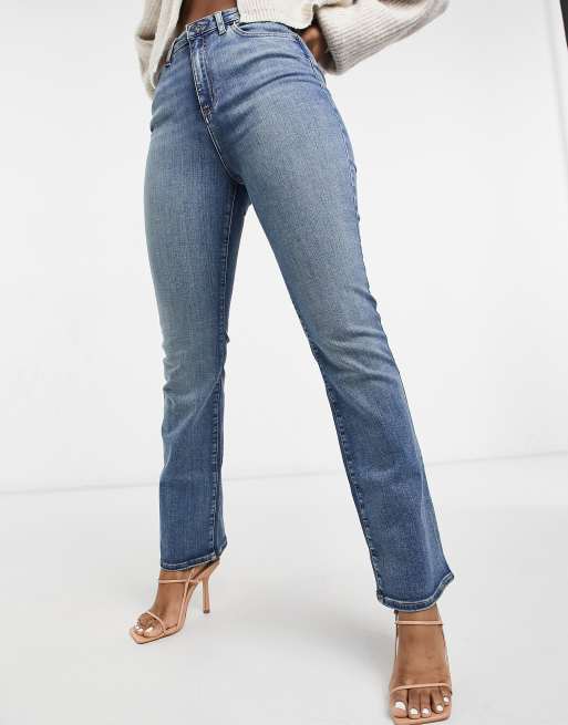 ASOS DESIGN – Mellanblå, utsvängda stretchjeans i 00-talsstil med hög midja