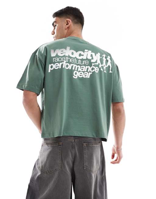 ASOS DESIGN – Mellangrön t-shirt i oversize med boxig passform och sporttryck