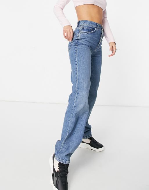 ASOS DESIGN – Mellanljustvättade, raka jeans med medelhög midja