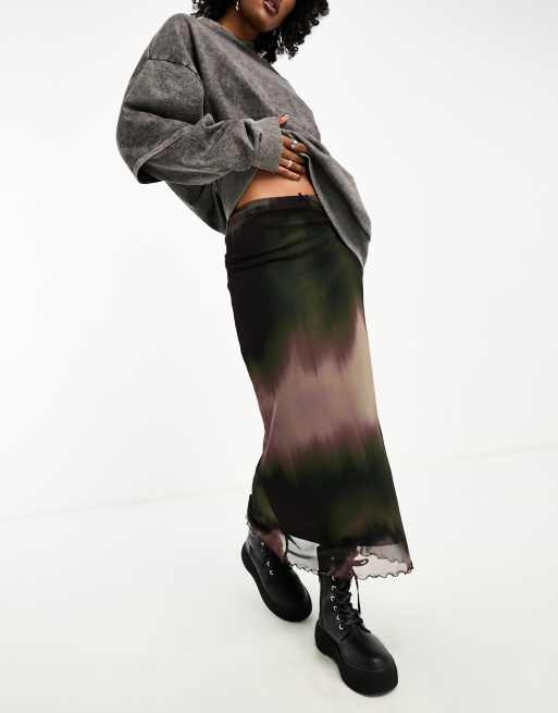 ASOS DESIGN - Midikjol i mesh med suddigt mönster
