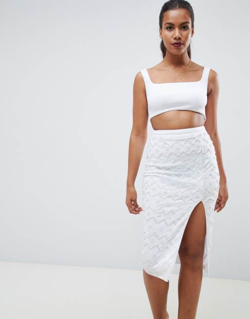 - Pärlutsmyckad mesh-kjol