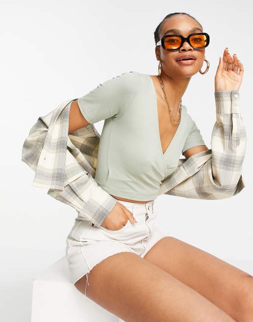 ASOS DESIGN – Mintfärgad kortärmad crop top med omlottdesign framtill