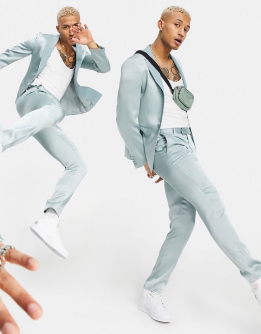 ASOS DESIGN – Mintgrön högglansig smoking med skinny passform