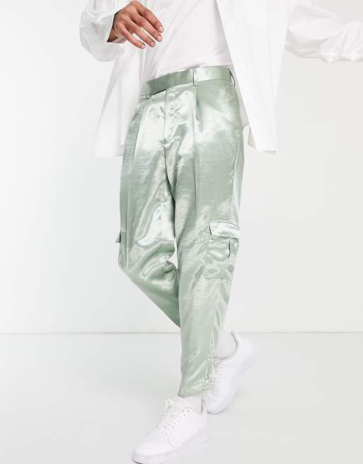 ASOS DESIGN – Mintgröna finbyxor av satinimitation i oversize med cargofickor