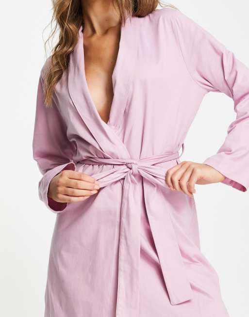ASOS DESIGN – Mixa & matcha – Rosa kort morgonrock i bomull - PINK