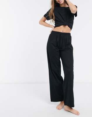 ASOS DESIGN – Mixa & matcha – Svarta pyjamasbyxor i jersey med raka ben