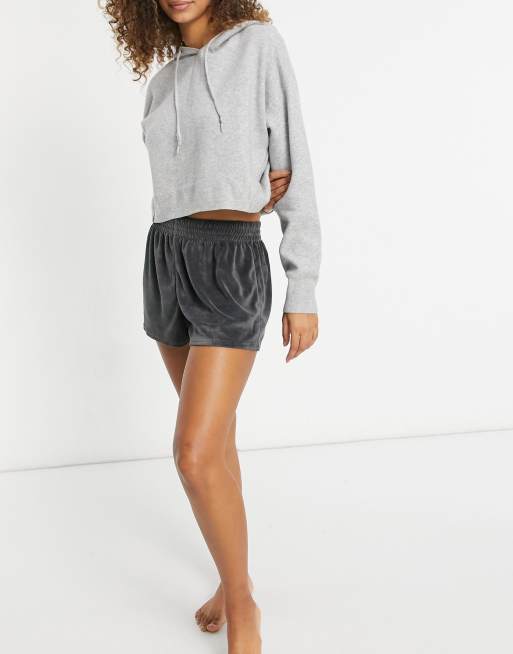 ASOS DESIGN – Mixa och matcha – Mörkgrå mysshorts i velour
