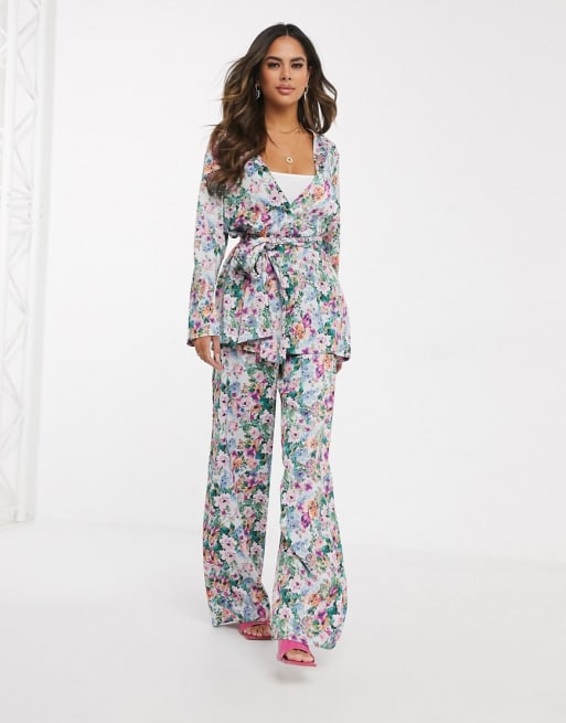 ASOS DESIGN – Mjuk, blommig kostym i satin