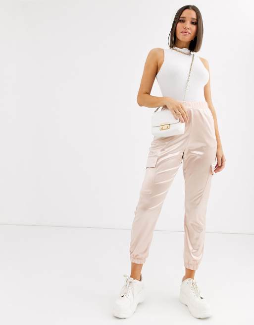 ASOS DESIGN – Mjukisbyxor i satin med fickor