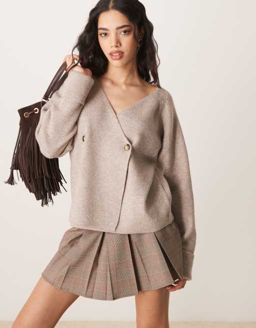 ASOS DESIGN – Moccabrun, dubbelknäppt kofta med omlottdesign