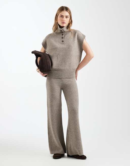 ASOS DESIGN – Moccabruna byxor med vida ben, del av set