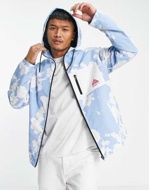 ASOS DESIGN – Molnmönstrad regnjacka med huva och logga framtill