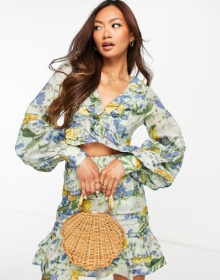 ASOS DESIGN – Mönstrat set med låg skärning och volanger med topp och minikjol