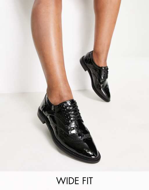 ASOS DESIGN – More – Svarta, platta skor med bred passform och snörning