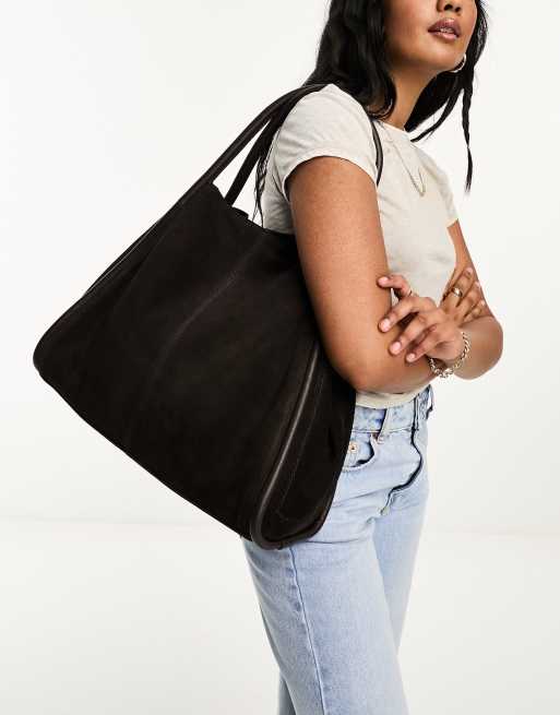 ASOS DESIGN – Mörk, chokladbrun toteväska i mocka med tubformade kanter