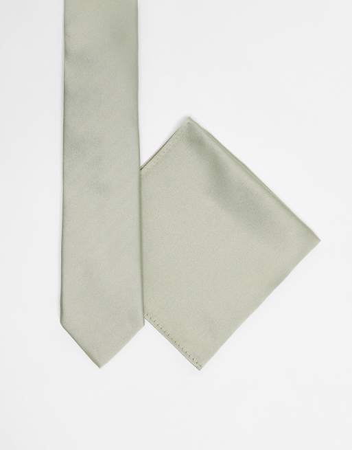ASOS DESIGN – Mörk, salviagrön slips och bröstnäsduk