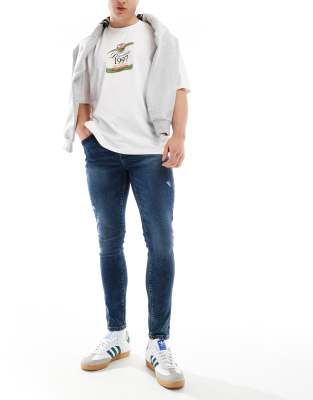 ASOS DESIGN – Mörkblå spray on-jeans med powerstretch och revor