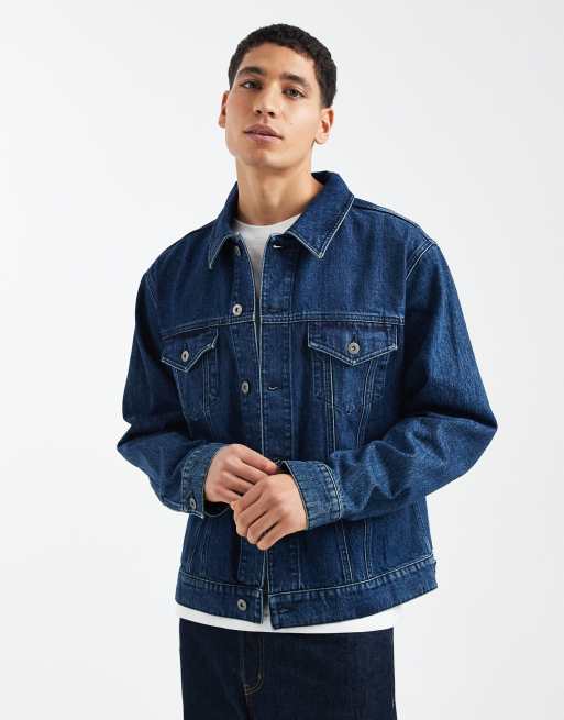 ASOS DESIGN – Mörkblå, tvättad truckerjacka i denim