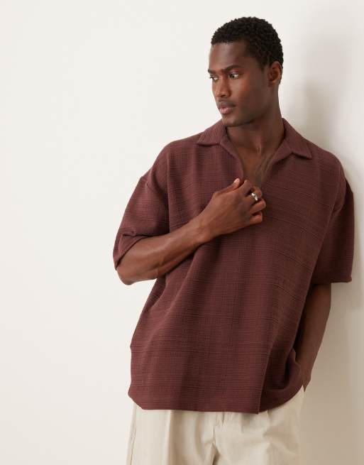 ASOS DESIGN – Mörkbrun pikétröja i oversize med platt krage