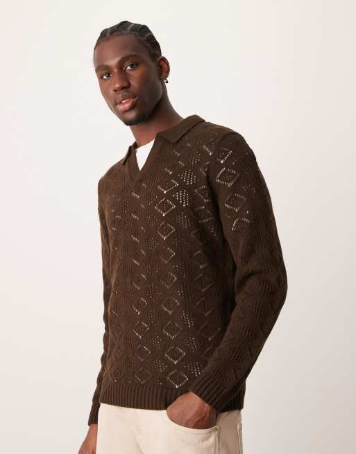 ASOS DESIGN – Mörkbrun, stickad och texturerad tröja med v-ringning