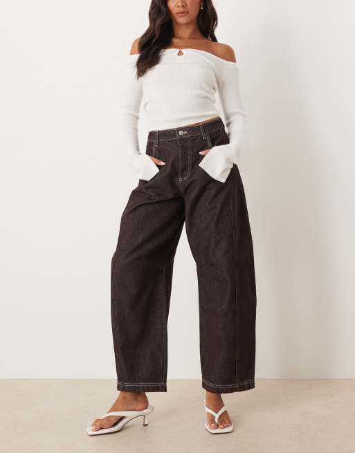 ASOS DESIGN – Mörkbruna, ankellånga jeans med barrelben