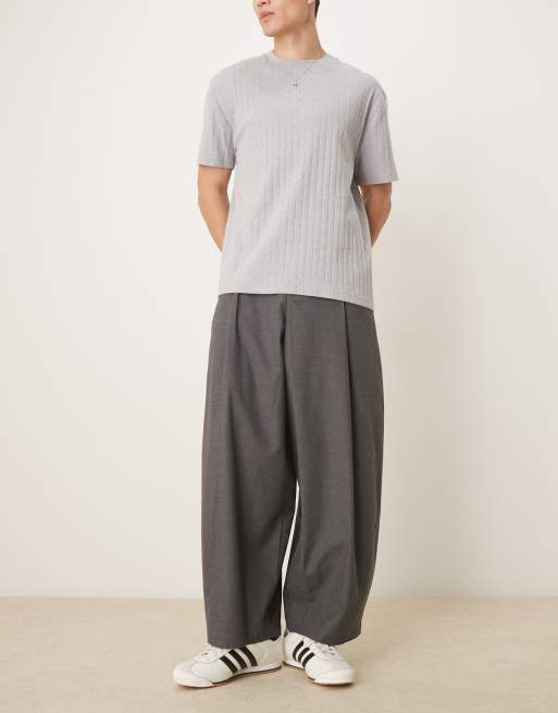 ASOS DESIGN – Mörkgrå, avsmalnande byxor med veck